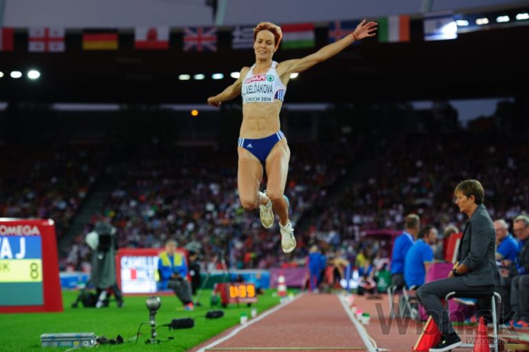 Slovenská reprezentantka Dana Velďáková vo finále súťaže trojskokaniek počas 22. ročníka ME v atletike vo švajčiarskom Zürichu. Švajčiarsko, Zürich, 15. august 2014. Foto: SITA/Pavol Uhrin