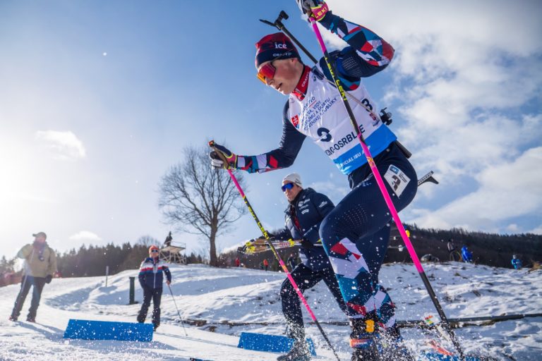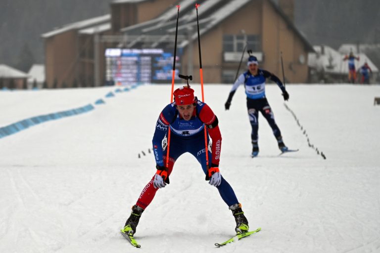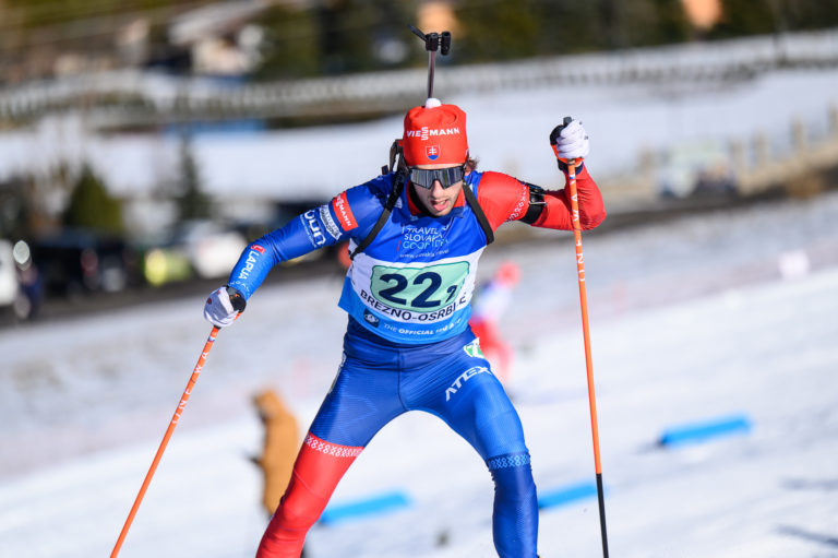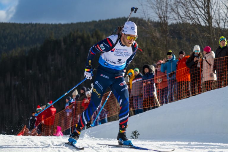 Francúzsky biatlonista Antonin Guigonnat počas stíhacích pretekov mužov na 12,5 km v rámci majstrovstiev Európy v biatlone 2024 v Osrblí. Brezno-Osrblie, 27. január 2024. Foto: SITA/Slovenský biatlon