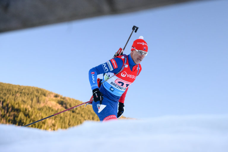 Slovenský biatlonista Matej Kazár počas miešanej štafety jednotlivcov v rámci majstrovstiev Európy v biatlone 2024 v Osrblí. Brezno-Osrblie, 28. január 2024. Foto: SITA/Slovenský biatlon/Soňa Niková