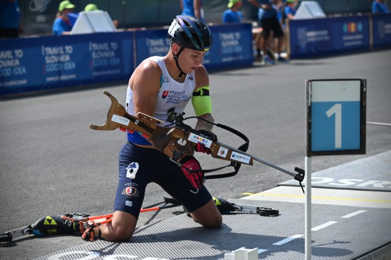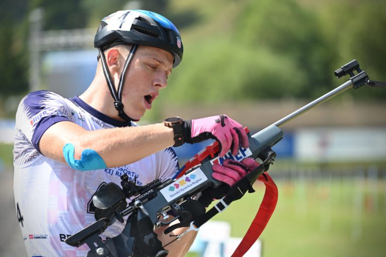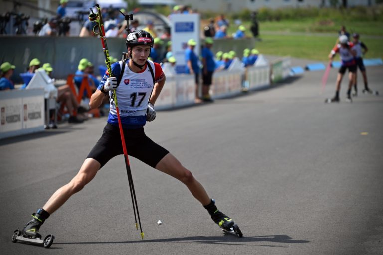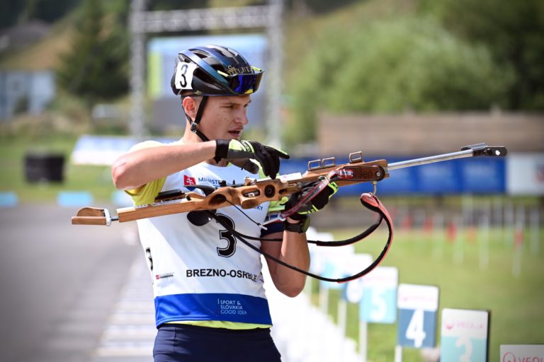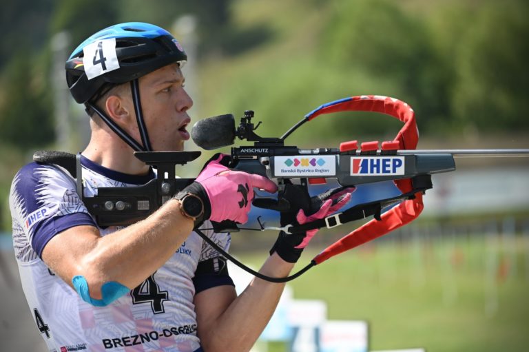Dvanásty v celkovom poradí Martin Ciernik zo Slovenska počas stíhacích pretekov juniorov na 10 km v rámci Majstrovstiev sveta v letnom biatlone v Národnom biatlonovom centre Osrblie. Osrblie-Brezno, 27. august 2023. Foto: SITA/Jakub Julény