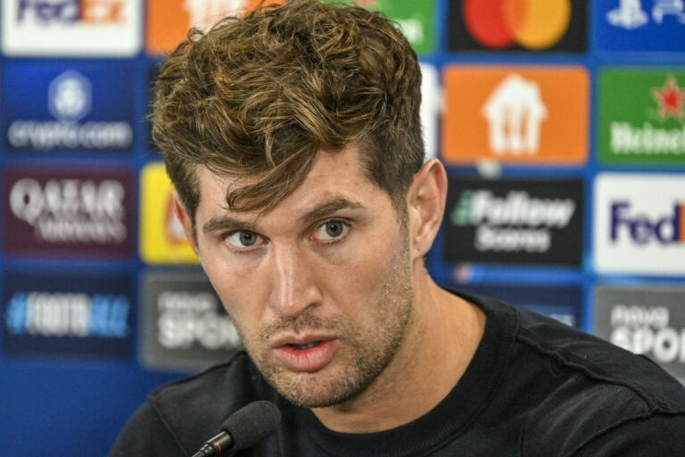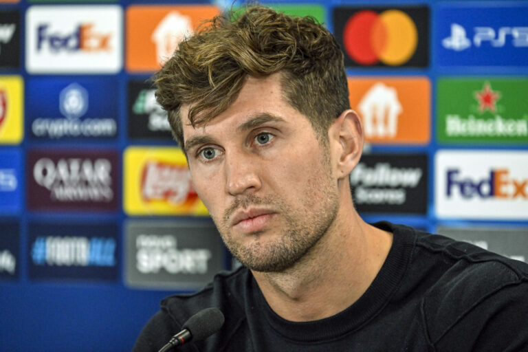 Futbalista John Stones počas tlačovej konferencie FC Manchester City pred zápasom Ligy majstrov UEFA 2024/25 medzi ŠK Slovan Bratislava – FC Manchester City v Národnom futbalovom centre v Bratislave. Bratislava, 30. september 2024. Foto: SITA/Milan Illík