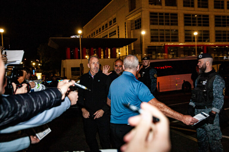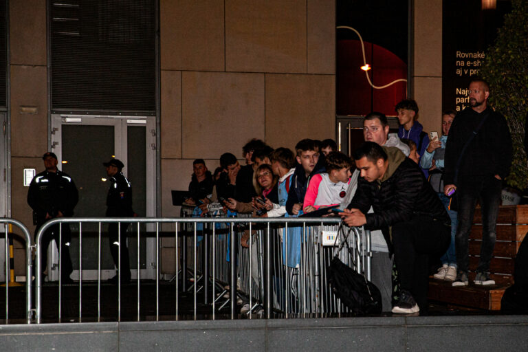 Atmosféra počas príchodu členov futbalového klubu Manchester City FC do Bratislavy pred futbalovým zápasom Ligy majstrov 2024 s ŠK Slovan Bratislava, ktorý sa uskutoční na Národnom futbalovom štadióne Tehelné pole v Bratislave. Bratislava, 30. september 2024. Foto: SITA/ Bokor Tomáš