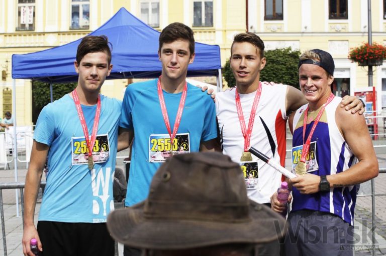 Tím Dukla Banská Bystrica, v ktorom pretekal aj Matej Tóth (vľavo) skončil na 3. mieste v štafete polmaratónu počas 3. ročníka podujatia Banskobystrický maratón 2014 (Marathon Banská Bystrica). Banská Bystrica, 7. september 2014. Foto: SITA/Ján Viazanička