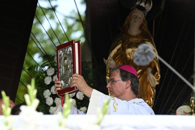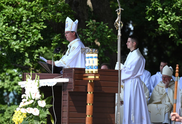 Spišský biskup František Trstenský celebruje slávnostnú odpustovú svätú omšu na Mariánskej hore pri príležitosti Levočskej púte. Levoča, 7. júl 2024. Foto: SITA/Viktor Zamborský