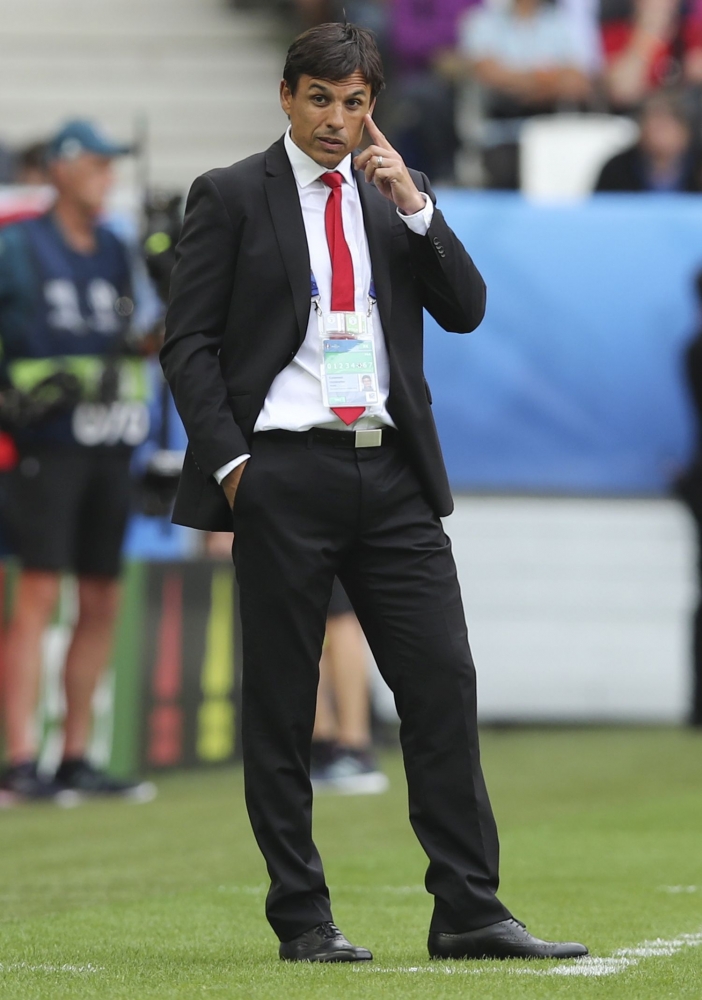 Tréner Walesu Chris Coleman počas zápasu proti Slovensku na majstrovstvách Európy vo futbale. Bordeaux, 11. jún 2016. Foto: SITA/AP