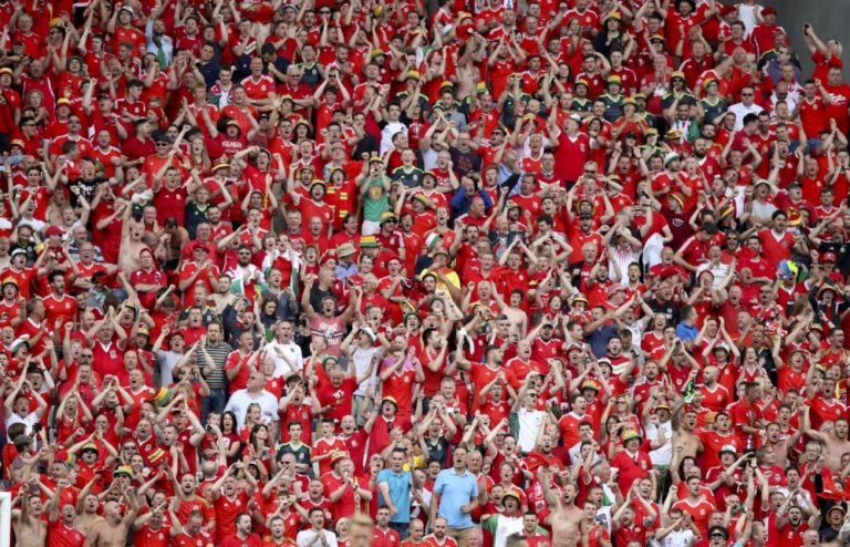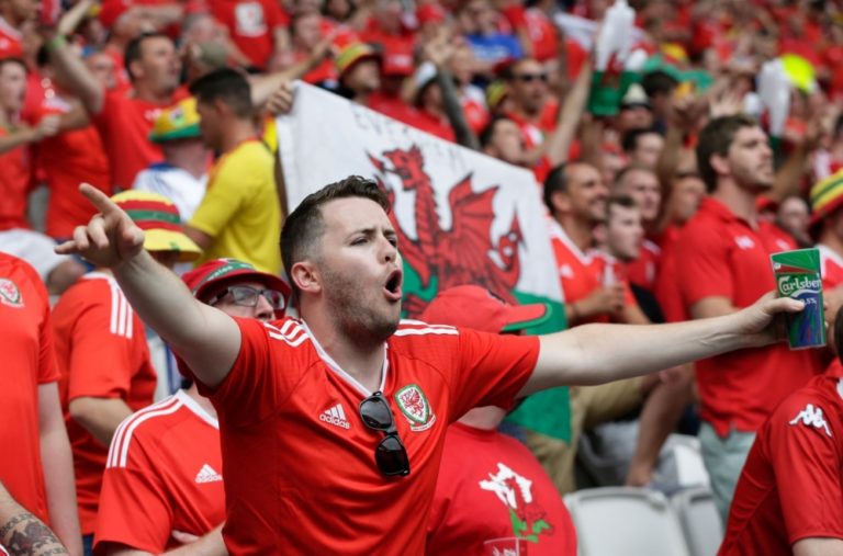 Fanúšikovia Walesu na Stade de Bordeaux počas zápasu proti Slovensku na majstrovstvách Európy. Bordeaux, 11. jún 2016. Foto: SITA/AP