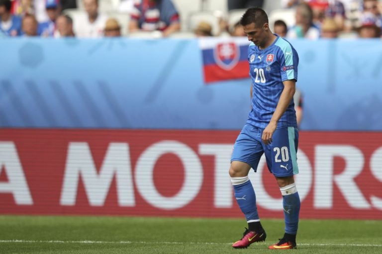Slovenský futbalista Róbert Mak počas zápasu proti Walesu na majstrovstvách Európy. Bordeaux, 11. jún 2016. Foto: SITA/AP