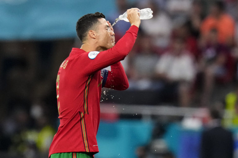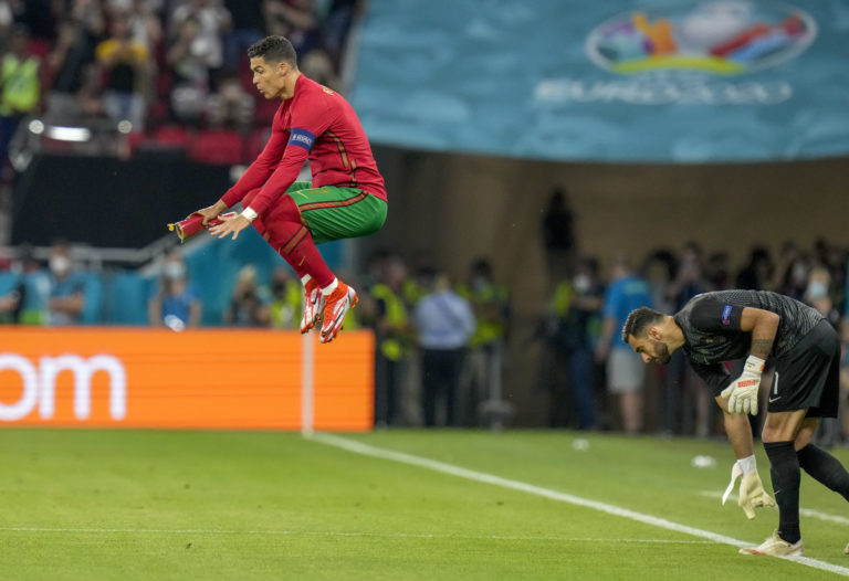 Portugalská hviezda Cristiano Ronaldo pred zápasom F-skupiny na ME vo futbale 2020 proti Francúzsku. Budapešť (Puskás Arena), 23. jún 2021. Foto: SITA/AP.
