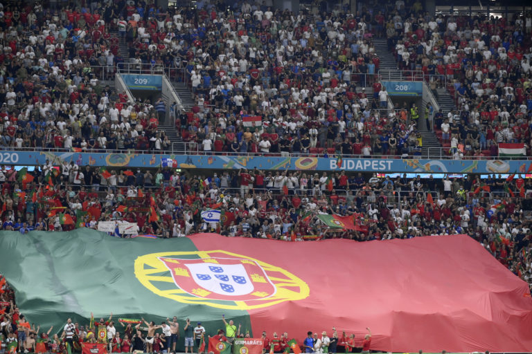 Fanúšikovia počas zápasu F-skupiny na ME vo futbale 2020 medzi Portugalskom a Francúzskom. Budapešť (Puskás Arena), 23. jún 2021. Foto: Franck Fife, Pool photo via AP.