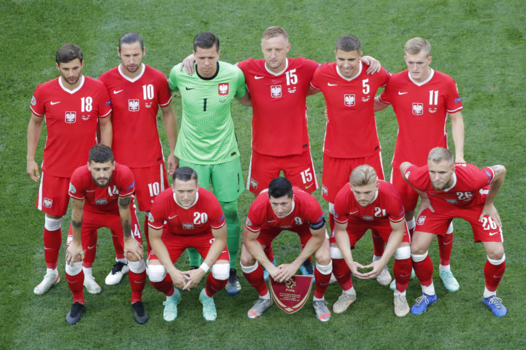 Poľskí hráči si pred zápasom robia skupinovú fotku. Petrohrad (Gazprom Arena), 23. jún 2021. Foto: SITA/AP