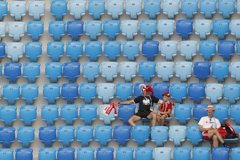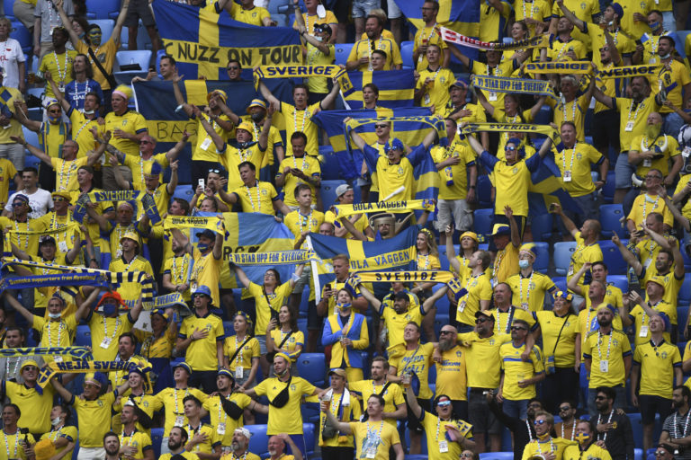 Fanúšikovia počas zápasu E-skupiny na ME vo futbale 2020 medzi Švédskom a Poľskom. Petrohrad (Gazprom Arena), 23. jún 2021. Foto: SITA/AP.