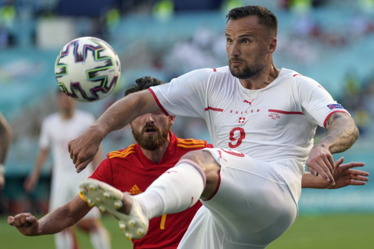 Haris Seferović počas zápasu A-skupiny na ME vo futbale 2020 proti Walesu. Baku, 12. jún 2021. Foto: SITA/AP