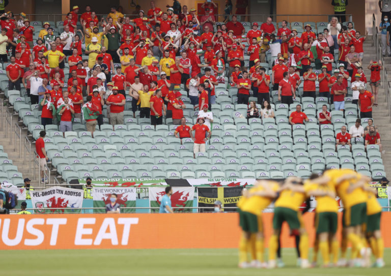 Fanúšikovia počas zápasu medzi Tureckom a Walesom na ME vo futbale 2020. Baku (Olympijský štadión), 16. jún 2021. Foto: SITA/AP.