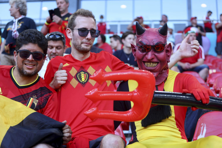Belgickí fanúšikovia počas zápasu B-skupiny na ME vo futbale 2020 medzi Dánskom a Belgickom. Kodaň, 17. jún 2021. Foto: SITA/AP