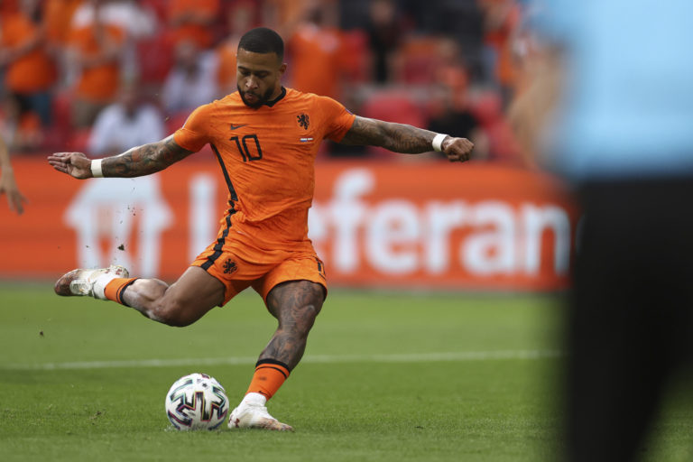 Memphis Depay z Holandska kope penaltu počas zápasu C-skupiny na ME vo futbale 2020 proti Rakúsku. Amsterdam, 17. jún 2021. Foto: SITA/AP
