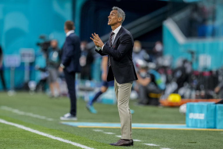 Tréner poľskej reprezentácie Paulo Sousa počas zápasu proti Slovensku na ME vo futbale 2020. Petrohrad, 14. jún 2021. Foto: SITA/AP.