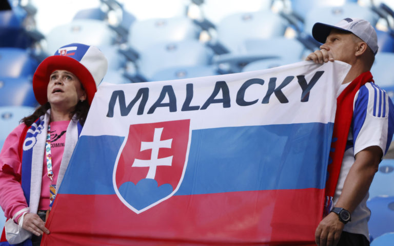 Fanúšikovia pred zápasom Slovensko - Poľsko na ME vo futbale 2020. Petrohrad, 14. jún 2021. Foto: SITA/AP.
