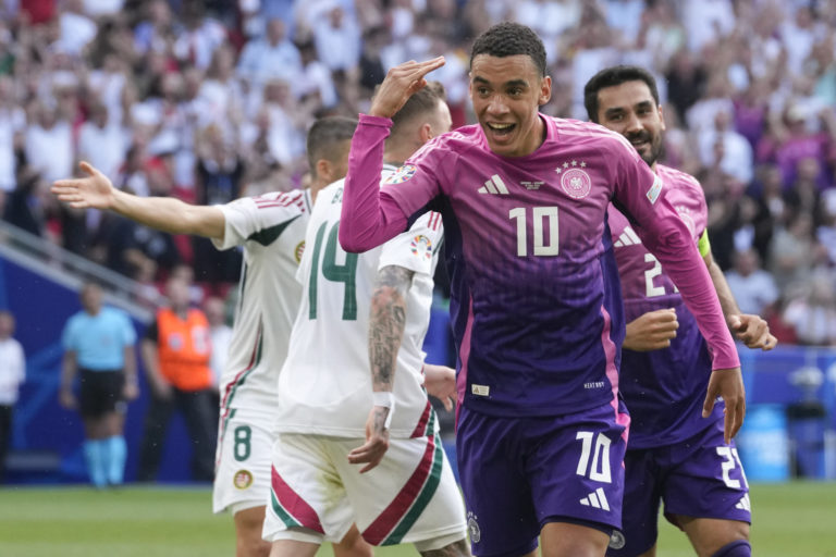 Jamal Musiala z Nemecka sa raduje zo svojho gólu v sieti Maďarska počas zápasu skupiny A na ME vo futbale 2024. Stuttgart, 19. jún 2024. Foto: SITA/AP