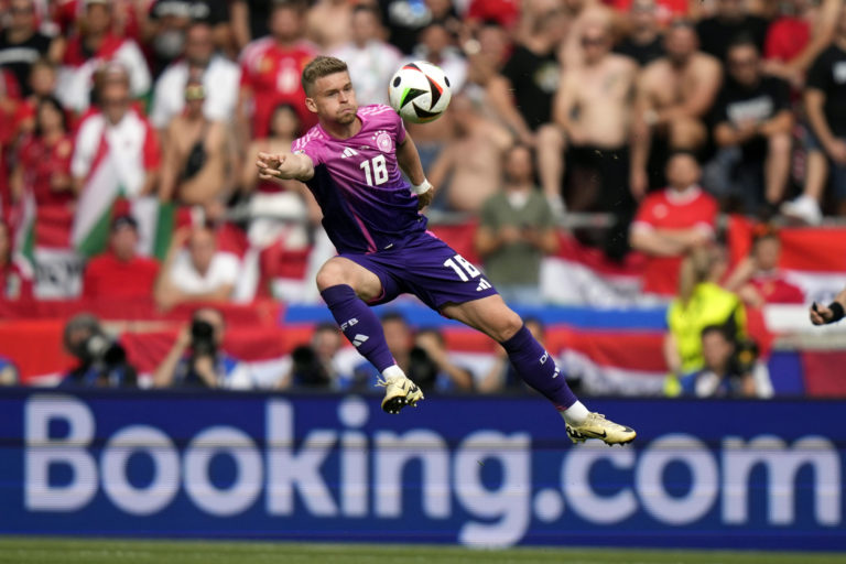 Maximilian Mittelstadt z Nemecka si spracováva loptu počas zápasu skupiny A na ME vo futbale 2024 proti Maďarsku. Stuttgart, 19. jún 2024. Foto: SITA/AP