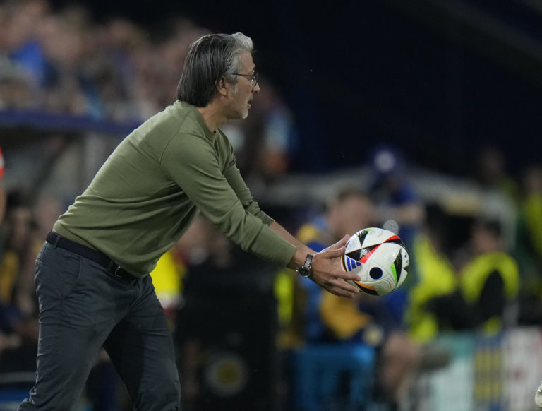 Tréner Švajčiarska Murat Yakin v zápase proti Škótsku v základnej A-skupine na ME vo futbale 2024. Kolín nad Rýnom, 19. jún 2024. Foto: SITA/AP.
