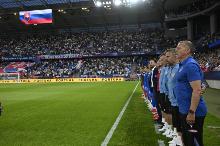 Tréner Jaroslav Kentoš (vpravo) pred zápasom zápasu A-skupiny 25. majstrovstiev Európy 2025 vo futbale hráčov do 21 rokov EURO U21 2025 medzi Slovensko - Rumunsko. Bratislava, 17. jún 2025. Foto: SITA/Milan Illík.