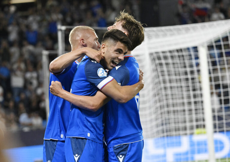 Gól Slovenska 2-0 počas zápasu A-skupiny 25. majstrovstiev Európy 2025 vo futbale hráčov do 21 rokov EURO U21 2025 medzi Slovensko - Rumunsko. Bratislava, 17. jún 2025. Foto: SITA/Milan Illík.