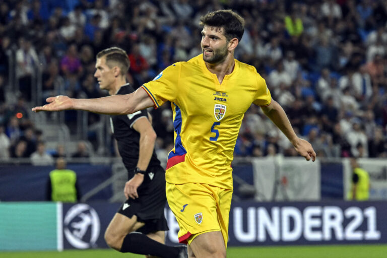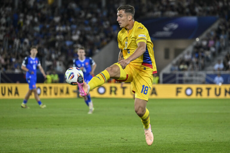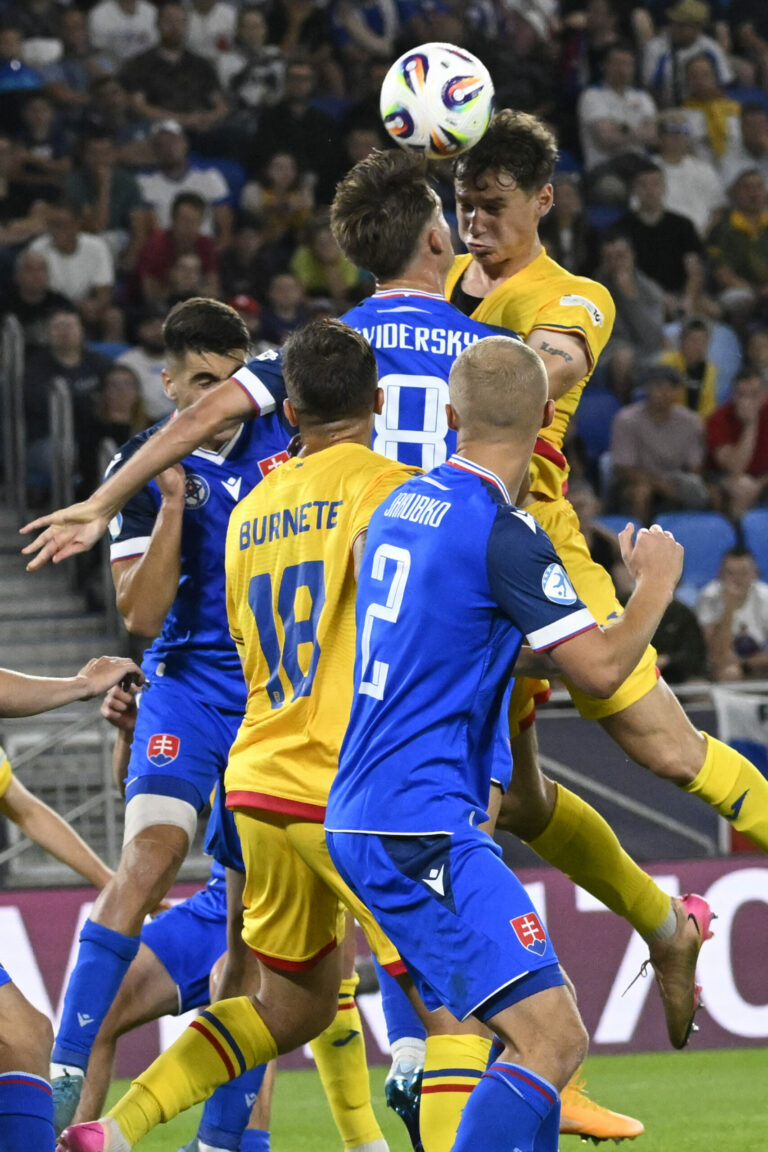 Rares Burnete z Rumunska počas zápasu A-skupiny 25. majstrovstiev Európy 2025 vo futbale hráčov do 21 rokov EURO U21 2025 medzi Slovensko - Rumunsko. Bratislava, 17. jún 2025. Foto: SITA/Milan Illík.