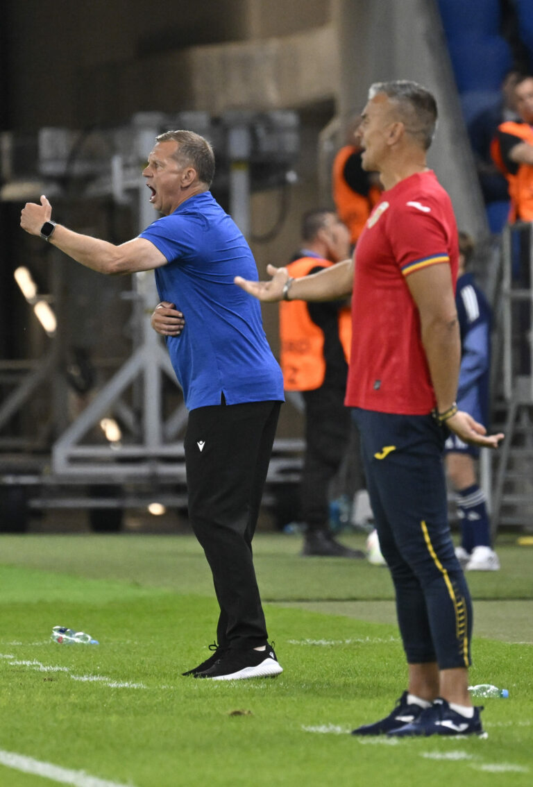 Zľava: Tréner Jaroslav Kentoš zo Slovenska a tréner DanielPancu z Rumunska počas zápasu A-skupiny 25. majstrovstiev Európy 2025 vo futbale hráčov do 21 rokov EURO U21 2025 medzi Slovensko - Rumunsko. Bratislava, 17. jún 2025. Foto: SITA/Milan Illík.