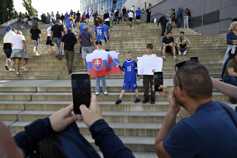 Fanúšikovia pred Národným futbalovým štadiónom v Bratislave pred zápasom A-skupiny 25. majstrovstiev Európy vo futbale hráčov do 21 rokov (EURO U21 2025) medzi Slovensko - Španielsko. Bratislava, 11. jún 2025. Foto: SITA/Milan Illík
