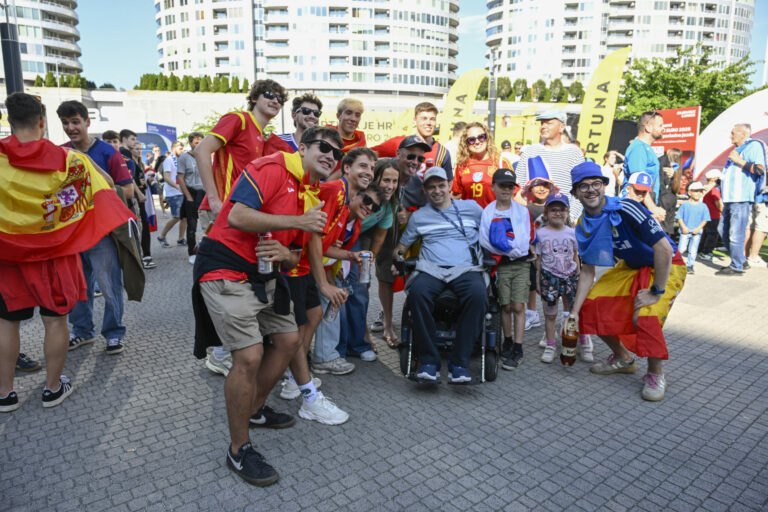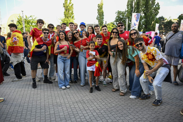 Fanúšikovia Španielska vo fanzóne pred Národným futbalovým štadiónom v Bratislave pred zápasom A-skupiny 25. majstrovstiev Európy vo futbale hráčov do 21 rokov (EURO U21 2025) medzi Slovensko - Španielsko. Bratislava, 11. jún 2025. Foto: SITA/Milan Illík