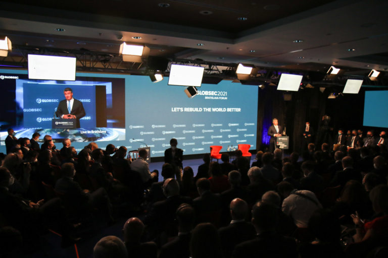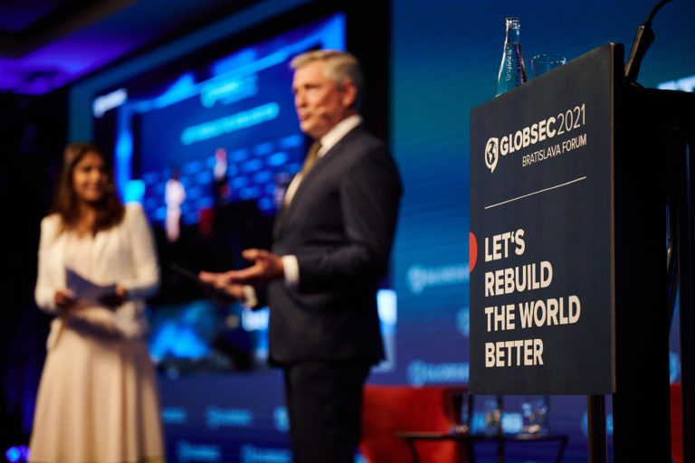 Atmosféra počas medzinárodnej konferencie Globsec 2021 Bratislava Forum. Bratislava, 15. jún 2021. Foto: SITA/Alexandra Čunderlíková