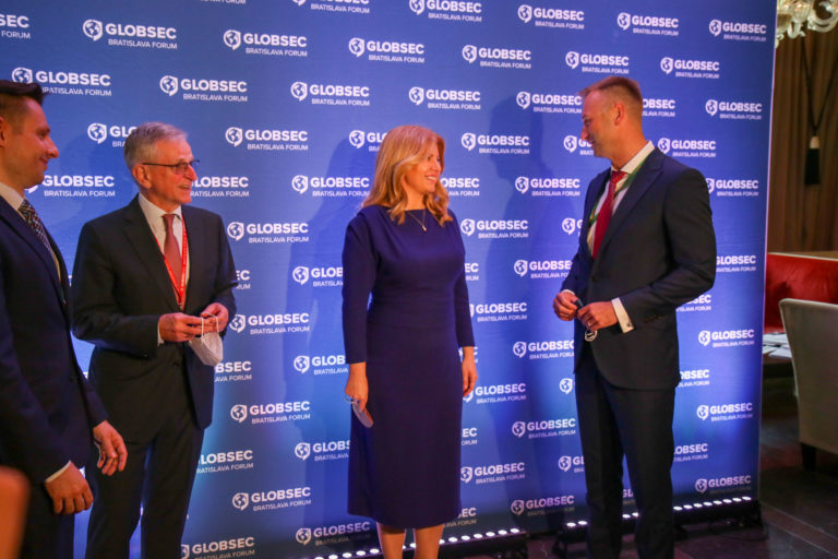 Prezidentka SR Zuzana Čaputová (druhá sprava) počas medzinárodnej konferencie Globsec 2021 Bratislava Forum. Bratislava, 15. jún 2021. Foto: SITA/Alexandra Čunderlíková