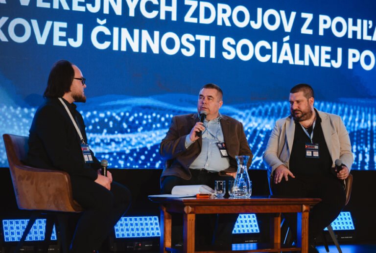 Sprava: Riaditeľ kancelárie generálneho riaditeľa Sociálnej poisťovne Lukáš Zajac, poradca generálneho riaditeľa Sociálnej poisťovne Pavol Martanovič a moderátor Šimon Jeseňák počas rozhovoru 1on2 Konsolidácia verejných zdrojov z pohľadu lekárskej posudkovej činnosti Sociálnej poisťovne v rámci medzinárodnej konferencie ITAPA Health&Care 2025 v Grand Hoteli Bellevue v Hornom Smokovci. Vysoké Tatry, 26. marec 2025. Foto: SITA/ITAPA