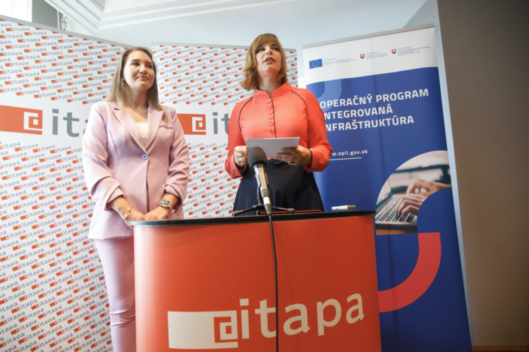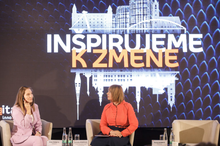Zľava: Erika Piirmets z e-Estonia a podpredsedníčka vlády a ministerka investícií, regionálneho rozvoja a informatizácie SR Veronika Remišová počas diskusie na tému budovania digitálnej Európy v rámci Medzinárodnej konferencie Jarná ITAPA 2022. Bratislava, 16. jún 2022. Foto: SITA/Branislav Bibel
