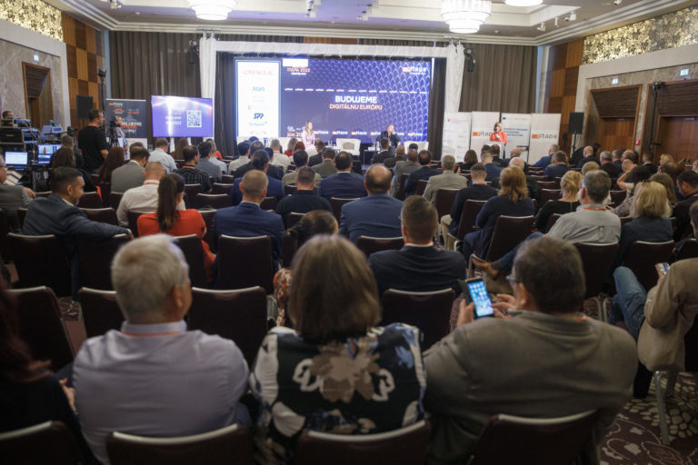 Atmosféra počas diskusie na tému budovania digitálnej Európy v rámci Medzinárodnej konferencie Jarná ITAPA 2022. Bratislava, 16. jún 2022. Foto: SITA/Branislav Bibel
