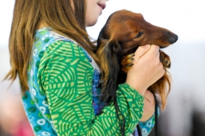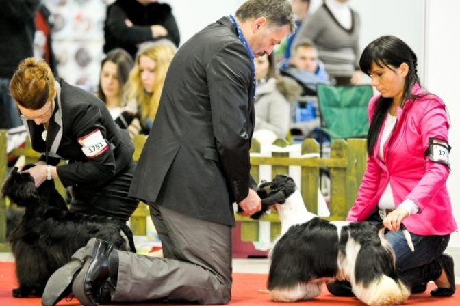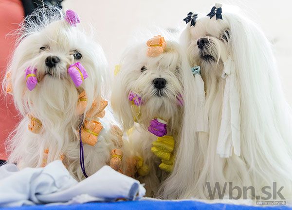 Pes plemena ruský toy dlhosrstý (lat. Canis lupus f. familiaris) počas Medzinárodnej výstavy psov 2015 v Nitre. Foto: SITA/Martin Havran