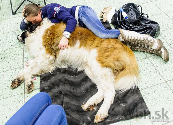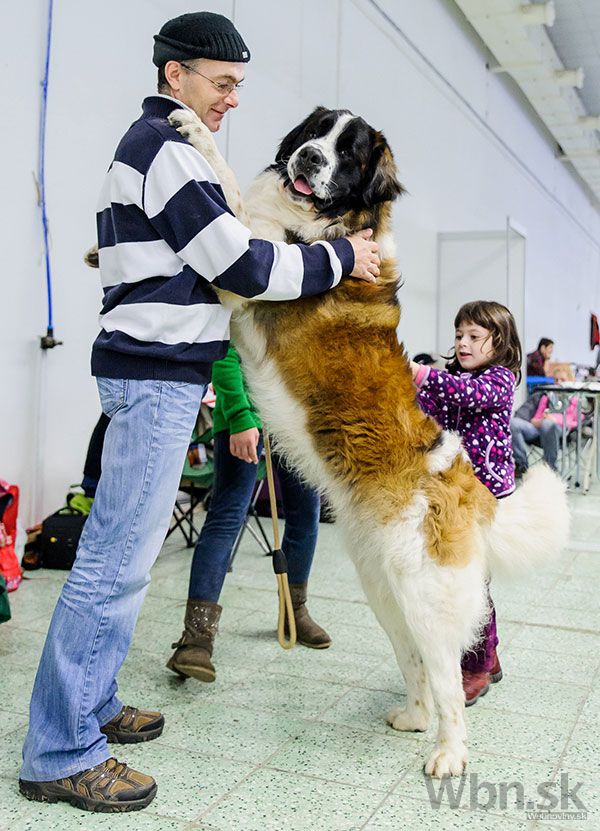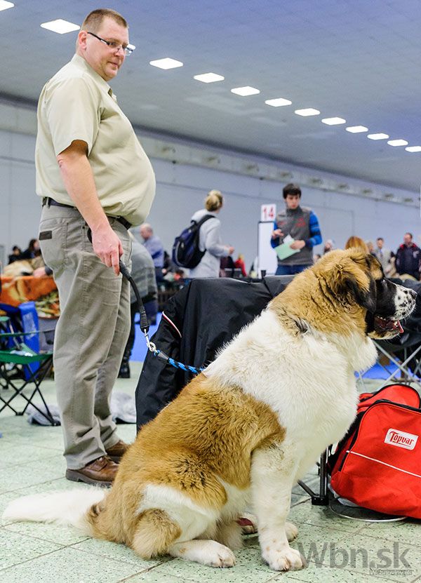 Pes plemena moskovský strážny pes (lat. Canis lupus f. familiaris) (vľavo) počas Medzinárodnej výstavy psov 2015 v Nitre. Nitra, 10. január 2015. Foto: SITA/Martin Havran