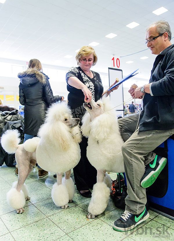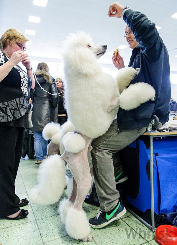 Pes plemena pudel veľký biely (lat. Canis lupus f. familiaris) počas Medzinárodnej výstavy psov 2015 v Nitre. Nitra, 10. január 2015. Foto: SITA/Martin Havran