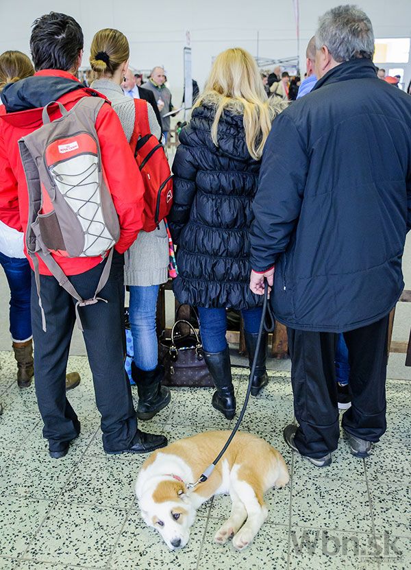 Pes plemena stredoázijský ovčiak (lat. Canis lupus f. familiaris) (dole) počas Medzinárodnej výstavy psov 2015 v Nitre. Nitra, 10. január 2015. Foto: SITA/Martin Havran