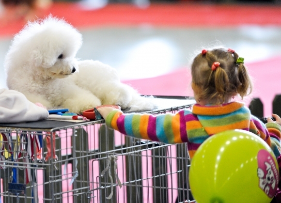 Plemeno psa bišónik (Canis familiaris) počas Medzinárodnej výstavy psov, ktorá sa koná v dňoch 1. a 2. decembra na výstavisku Agrokomplex v Nitre. Foto: SITA/Martin Havran