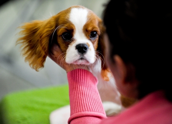 Plemeno psa cavalier king charles španiel (Canis familiaris) počas Medzinárodnej výstavy psov, ktorá sa koná v dňoch 1. a 2. decembra na výstavisku Agrokomplex v Nitre. Foto: SITA/Martin Havran