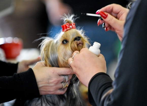 Plemeno psa yorkshirský teriér (Canis familiaris) počas Medzinárodnej výstavy psov, ktorá sa koná v dňoch 1. a 2. decembra na výstavisku Agrokomplex v Nitre. Foto: SITA/Martin Havran