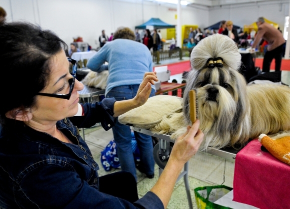 Plemeno psa shih-tzu (Canis familiaris) počas Medzinárodnej výstavy psov, ktorá sa koná v dňoch 1. a 2. decembra na výstavisku Agrokomplex v Nitre. Foto: SITA/Martin Havran