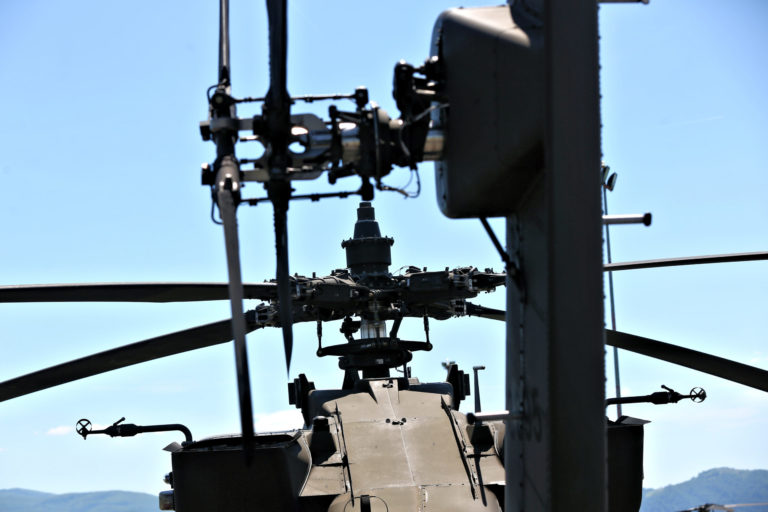 Detaily vrtuľníkov Black Hawk počas prehliadky vrtuľníkových jednotiek Ozbrojených síl SR a US Army dislokovaných na leteckej základni Sliač v rámci mediálneho dňa pri príležitosti cvičenia Slovenský štít 2021. Sliač, 15. jún 2021. Foto: SITA/Peter Rusko