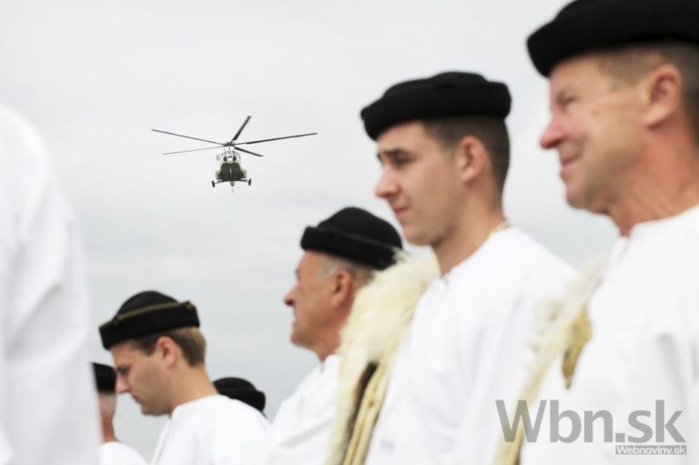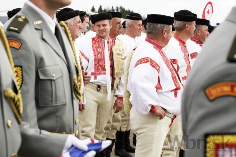 Chlapský zbor z povstaleckých obcí SNP počas otvorenia Medzinárodných leteckých dní SIAF 2014. Sliač, 30. august 2014. Foto: SITA/Ján Viazanička