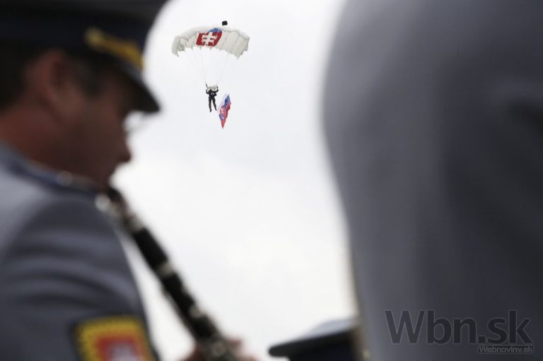 Parašutista počas otvorenia Medzinárodných leteckých dní SIAF 2014. Sliač, 30. august 2014. Foto: SITA/ Ján Viazanička
