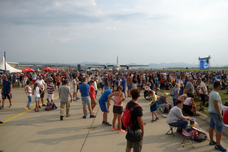 Návštevníci Medzinárodných leteckých dní SIAF 2018 na letisku Sliač. Sliač, 1. september 2018. Foto: SITA/Jakub Julény.