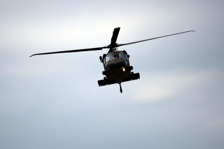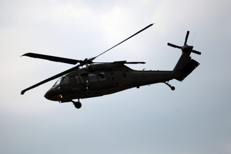 Sikorsky UH-60 Black Hawk Ozbrojených síl SR počas ukážky v rámci medzinárodných leteckých dní SIAF 2018 na letisku Sliač. Sliač, 1. september 2018. Foto: SITA/Jakub Julény.