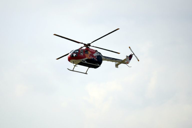 Vrtuľník typu MBB Bo 105 počas ukážky v rámci Medzinárodných leteckých dní SIAF 2018 na letisku Sliač. Sliač, 1. september 2018. Foto: SITA/Jakub Julény.