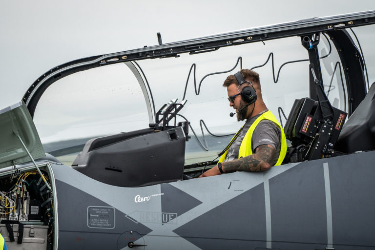 Pilot v lietadle L-39NG počas Medzinárodných leteckých dní SIAF 2022 na Leteckej základni Malacky - Kuchyňa. Kuchyňa, 28. august 2022. Foto: SITA/Filip Cepka.